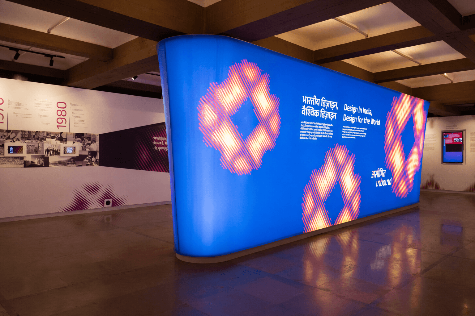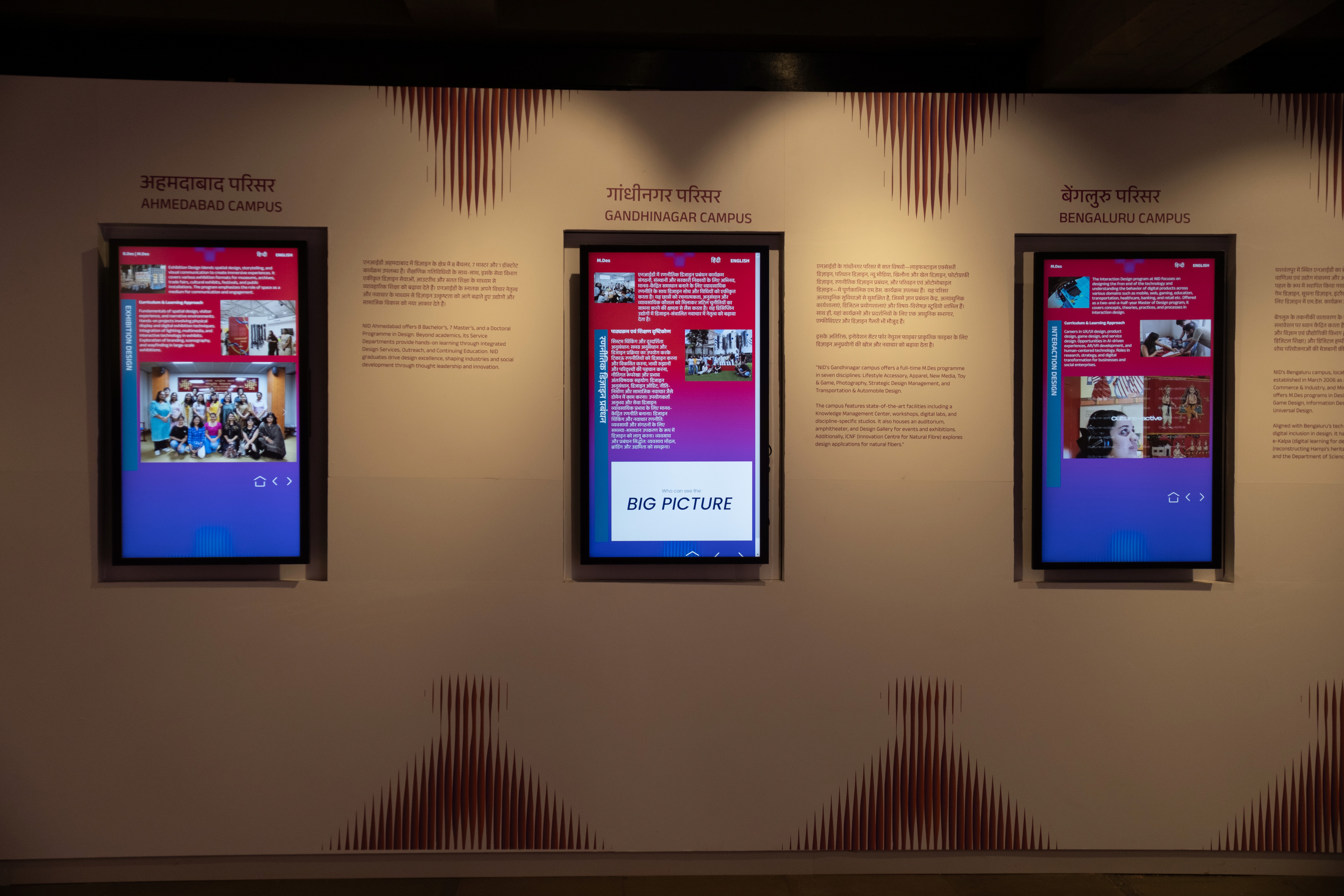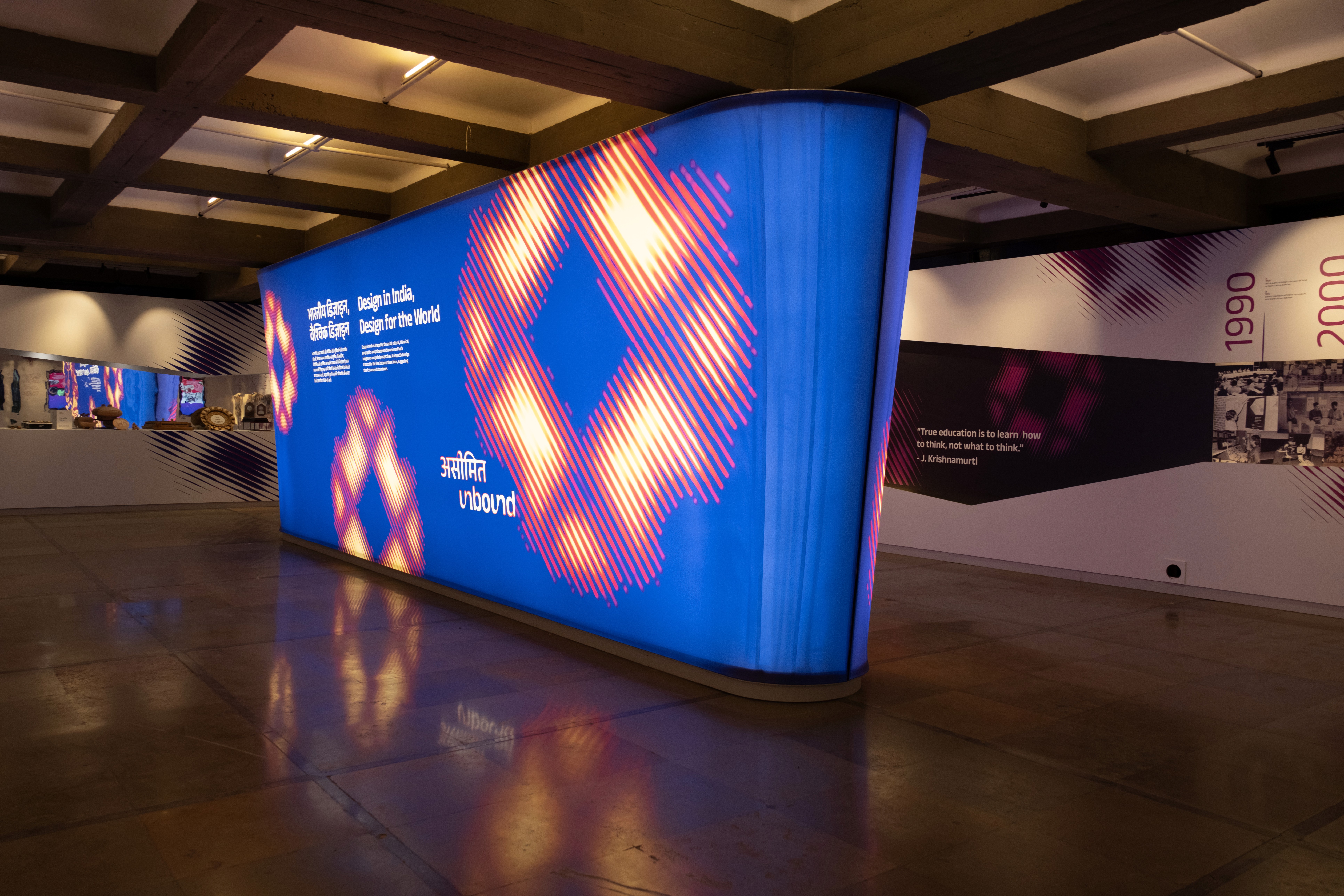 Unbound is an exhibition at PANORAMA, a permanent exhibit space in NID, refreshed every 2–3 years, showcasing accolades, outreach, and collaborations. Orginially made for the 44th Convocation, The project presents all the global collaboration and exchanges in the from of digitized interactive media highlighting achievements and initiatives across design, education, and partnerships. It also acts as a digital repository for all the three campuses, accolades and collaboration in a digitised database.